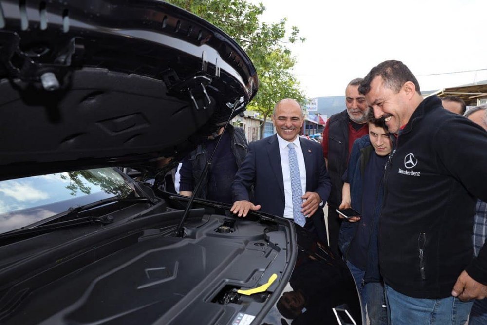 Öte yandan Körfez Belediye Başkanı Şener Söğüt, Türkiye’nin ilk yerli otomobili Togg ile ilçede tur attı. Mahalle mahalle gezen ve mitin öncesinde yürüyüşün başladığı alana da yine Togg ile gelen Başkan Söğüt, burada ve gittiği her yerde vatandaşlarla ve yerli otomobil ile bol bol anı fotoğrafı çektirdi. Bir ara Yarımca Sanayi Sitesi’ne giden Söğüt ile birlikte aracın motor kısmını inceleyen iş yeri sahiplerinin hayranlıklarını gizleyemedikleri gözlendi.