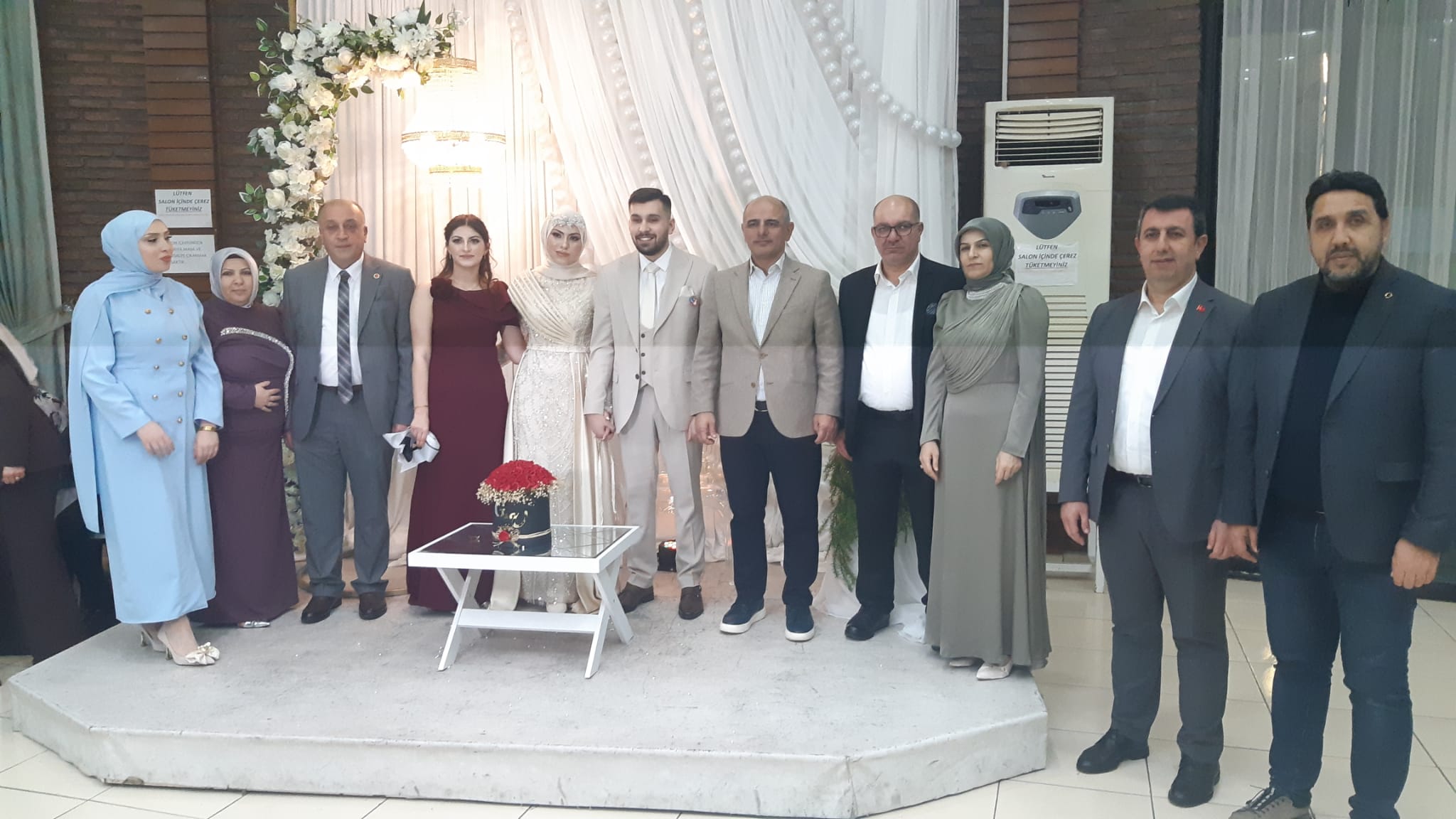 Körfez Belediyesi Mustafa Efe Kültür Merkezi Salonunda gerçekleşen nişan törenine kalabalık aile grubu katılırken, genç çiftin yüzüklerini Körfez Belediye Başkanı Şener Söğüt takarak kurdeleyi kesti. Şener Söğüt, nişanın anlamlı bir güne denk getirilmesinin güzel bir düşünce olduğunu söyleyerek, genç çifte mutluluklar diledi.