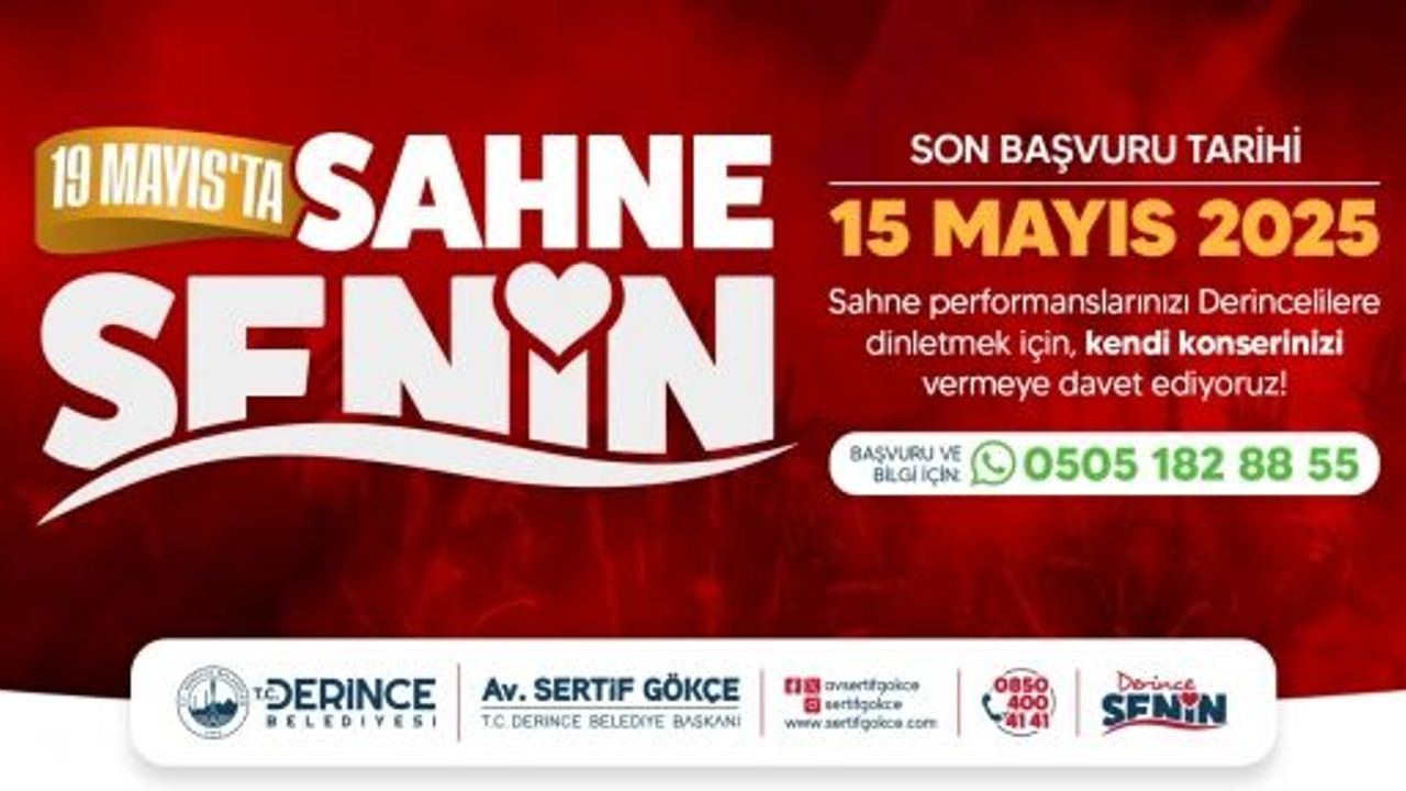 Derince Belediyesi, 19 Mayıs Atatürk’ü Anma, Gençlik ve Spor Bayramı’nı coşku içerisinde kutlamak için hazırlıklarını sürdürüyor. İlçe halkını da programlara dahil eden Derince Belediyesi, “19 Mayıs’ta Sahne Senin” sloganıyla sosyal medya hesaplarından önemli bir bilgilendirmede bulundu. Konuyla ilgili yapılan açıklamada, “Derince Belediyesi olarak 19 Mayıs Atatürk’ü Anma, Gençlik ve Spor Bayramı’nda düzenleyeceğimiz konser programında sen de sahne al. Şarkı söylüyorsan, enstrüman çalıyorsan ya da yeteneğine güveniyorsan başvurunu yap, bu özel günde sahne heyecanını bizimle paylaş” denildi. Son başvuru tarihinin 15 Mayıs olarak belirlendiği 18 yaş ve üzeri vatandaşların müracaatına açık olan etkinliklere başvurmak ve detaylı bilgi almak isteyenlerin 0505 182 88 55 numaralı telefondan iletişim kurabilecekleri belirtildi.
