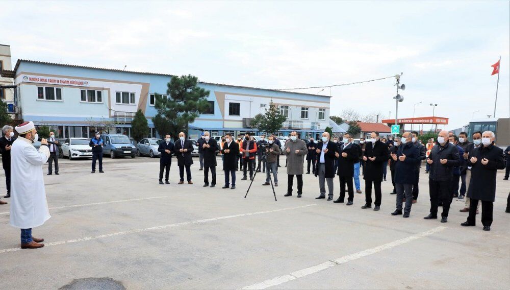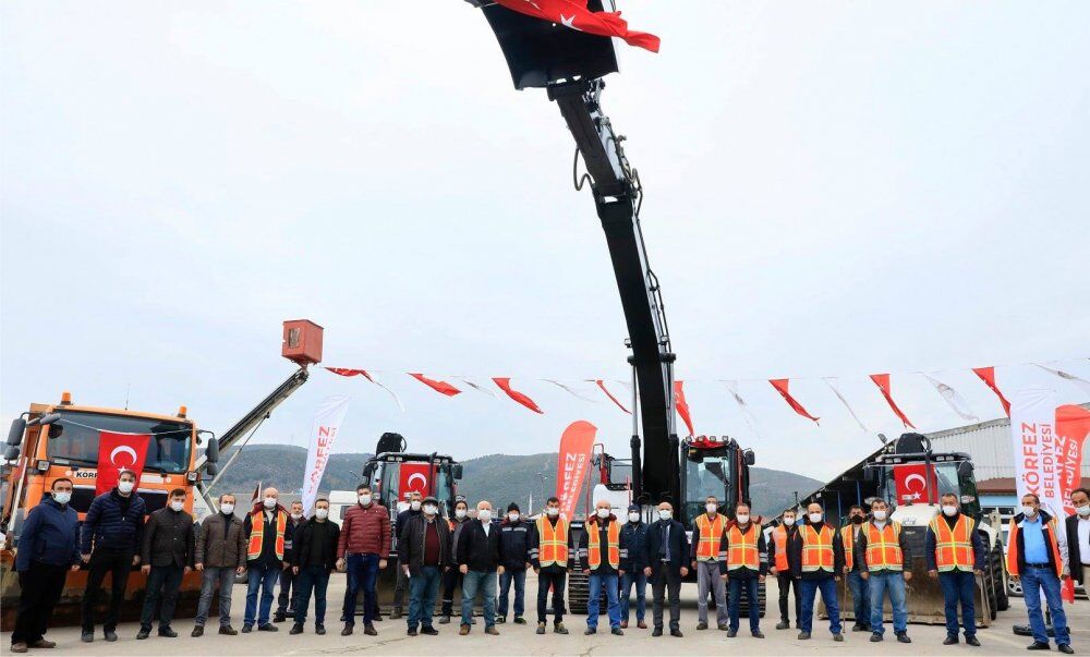 Körfez Belediyesi, araç filosuna 5 yeni iş makinesini daha ekledi. Yeni araçların hizmete alımı için de Teknik Hizmetler Alanı’nda tören düzenlendi. Törene Başkan Şener Söğüt dışında Başkan Yardımcıları İbrahim Çırpan, Osman Yurt ve Levent Yılmaz ile birim müdürleri ve çalışanlar katıldı. Dualar eşliğinde gerçekleştirilen hizmete alım töreninde Başkan Şener Söğüt’de bir konuşma gerçekleştirdi.