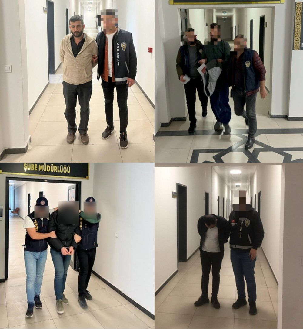Kocaeli İl Emniyet Müdürlüğünce aranan şahısların yakalanmasına yönelik çalışma başlattı. Yapılan çalışmalar neticesinde "Bilişim sistemleri banka veya kredi kurumlarının araç olarak kullanılması suretiyle dolandırıcılık" suçundan 5 yıl hapis cezası ile aranan K.T. (40), "Birden fazla kişiyle kendisini tanınmayacak hale koyarak silahla yağma" suçundan 5 yıl hapis cezası ile aranan M.T. (38), "Cebir tehdit veya hile kullanarak kişiyi hürriyetinden yoksun kılma" suçundan 5 yıl 3 ay kesinleşmiş hapis cezası ile aranan N.E. (30), "Kocaeli ağır ceza ilamat masasınca dolandırıcılık", "Hendek ilamat ve infaz bürosunca hükümlü ve tutuklunun kaçması" suçlarından 12 yıl 8 ay 26 gün kesinleşmiş hapis cezası ile yakalama emri bulunan E.D.A.(42) düzenlenen operasyonla yakalandı. Gözaltına alınan hükümlüler, işlemleri sonrasında çıkarıldığı mahkemece tutuklanarak cezaevine gönderildi.