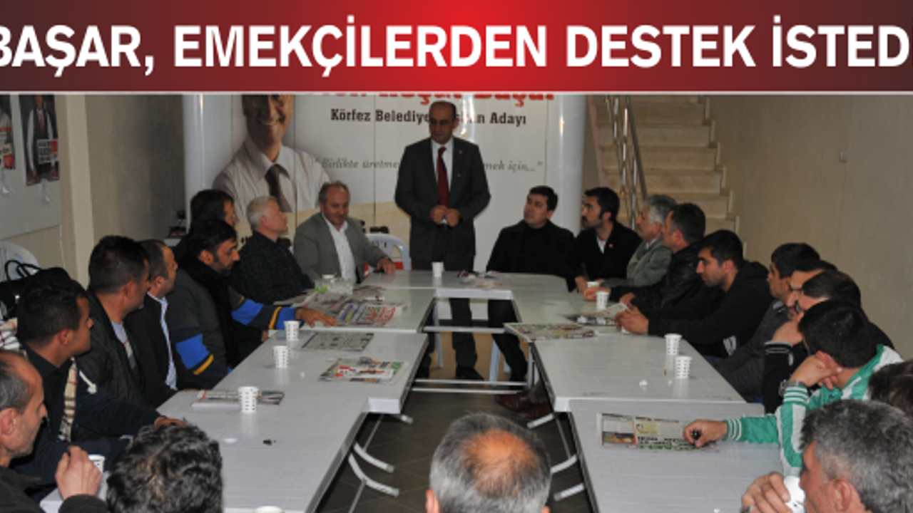 CHP Adayı Başar, bazı taşeron firmalarda çalışan Körfez’li işçileryerel seçim merkezinde Prof.Dr. Reşat Başar'ı ziyaret ederek, yaşadıkları zorlukları anlattılar, beklentilerinden bahsettiler. Projelerinden den bahseden Başar, emeğin ve emekçinin yanında olduğunu ve olacağını söyleyerek, iktidara geldiklerinde emekçi hakları için elinden geleni yapacağına söz verdi.