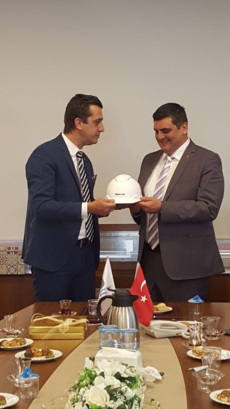 Başkan Ok da, ziyaretten duyduğu memnuniyeti ifade ederek, öncelikle Başkan Ayaz ve yönetimine  başarılarını devamını diledi. Başkan Ok, "Biz Kocaeli İnşaat Mühendisleri Odası olarak birlik beraberlik içinde çalışan iyi bir ekibiz" diye konuştu. Oda Başkanı Ok, Başkan Ayaz'a isminin yazılı olduğu baret hediye etti.