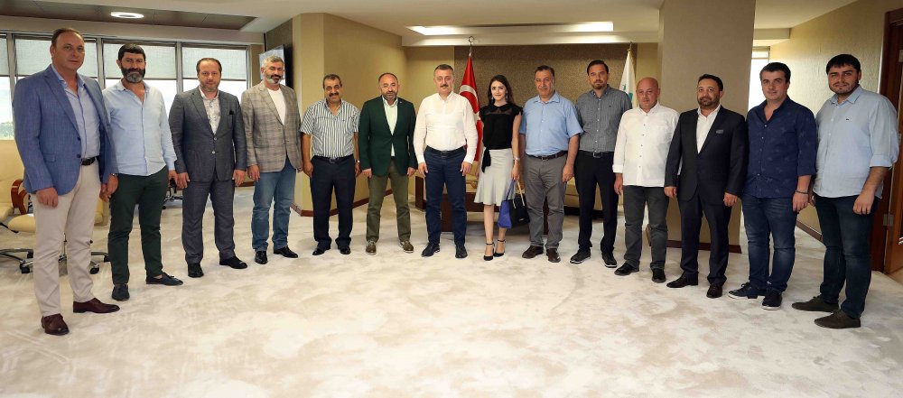 Marmara Belediyeler Birliği ve Kocaeli Büyükşehir Belediye Başkanı Doç. Dr. Tahir Büyükakın, geçtiğimiz günlerde olağanüstü kongre yapan Kocaelispor Başkanı Hüseyin Üzülmez ve yönetimi makamında konuk etti. Kocaelispor Kulüp Başkanı Hüseyin Üzülmez’in 41 Forma numaralı hediye ettiği Başkan Büyükakın, nazik ziyaretleri için konuklarına teşekkür etti. Kocaelispor’un başarısının kente büyük değer katacağını bir kez daha dile getiren Başkan Büyükakın, “Kocaelispor ‘un kendi ayakları üzerinde durmasını istiyoruz. Bunun için elimizden geleni yapacağız, gayret edeceğiz” dedi.
