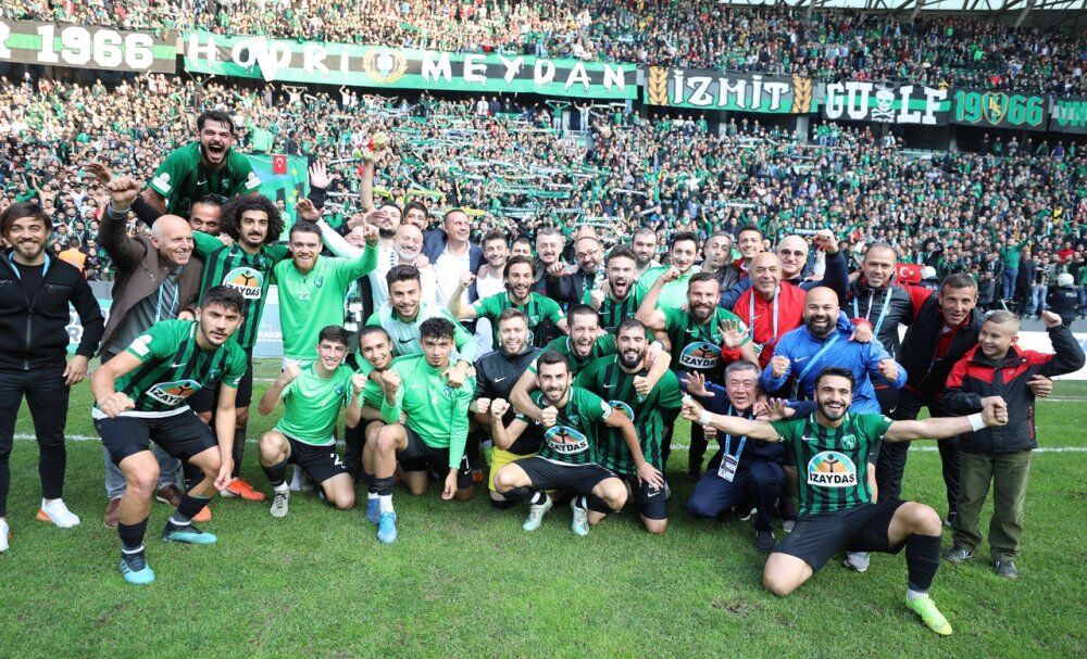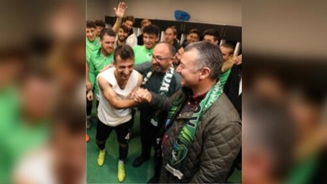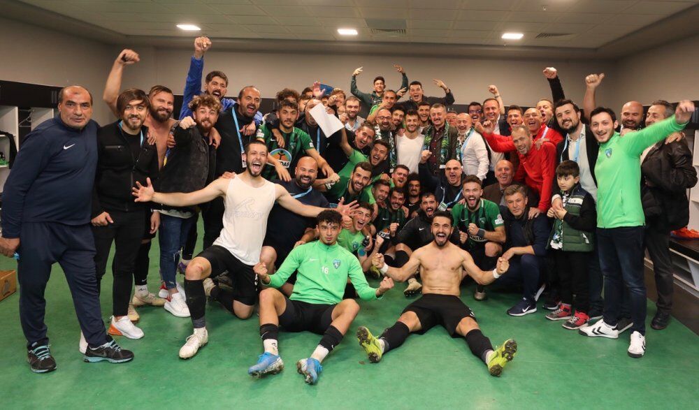 Kocaelispor’un şampiyonluktaki en yakın rakibi Esenler Erokspor’u 2-0 yenmesinin ardından sahaya inerek futbolcuların sevincine de ortak olan Büyükşehir Belediye Başkanı Doç. Dr. Tahir Büyükakın, yeşil siyahlılarla tribünlerin önünde galibiyet fotoğrafı çektirdi. Soyunma odasında futbolcuların alınan galibiyetin sevincine de ortak olan Başkan Büyükakın, futbolcuların isteği üzerine Kocaelispor Kulübü’nün açıkladığı 8 bin TL’lik galibiyet primine 2 bin TL destek vererek 10 bin TL olmasını sağladı. Kocaelisporlu futbolcular ayrıca, galibiyet sevincini kendileriyle yaşayan ve yeşil siyahlı renklere her türlü desteği veren Başkan Büyükakın’a teşekkür etmeyi de ihmal etmediler.