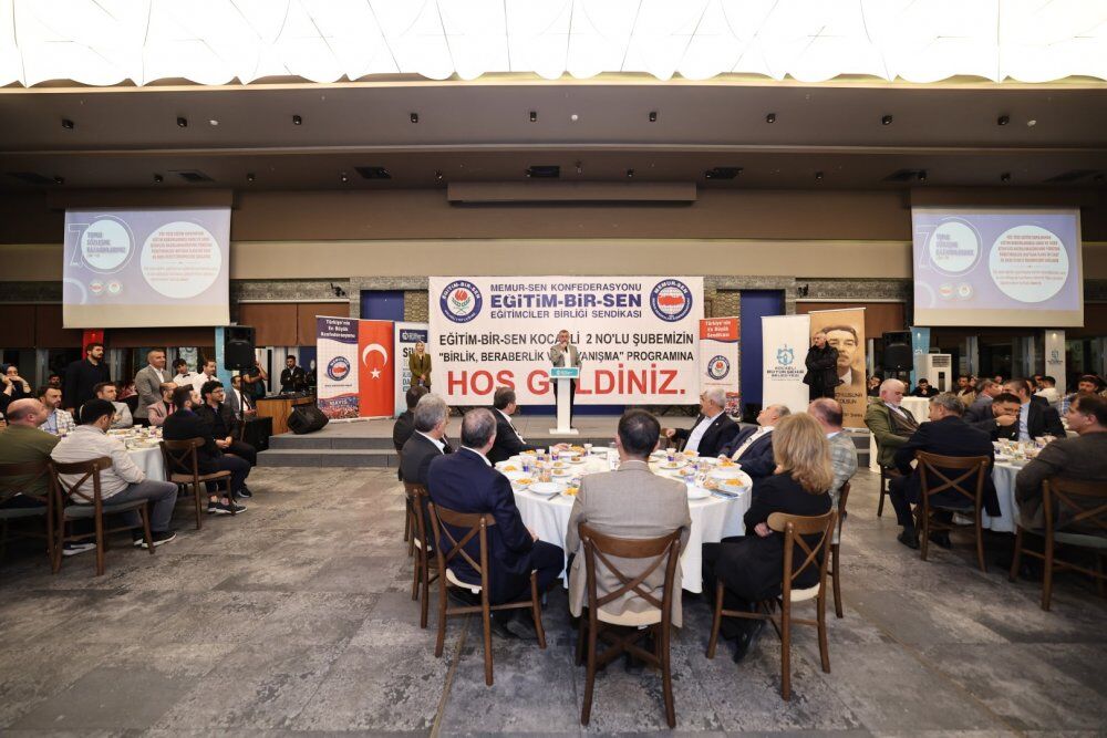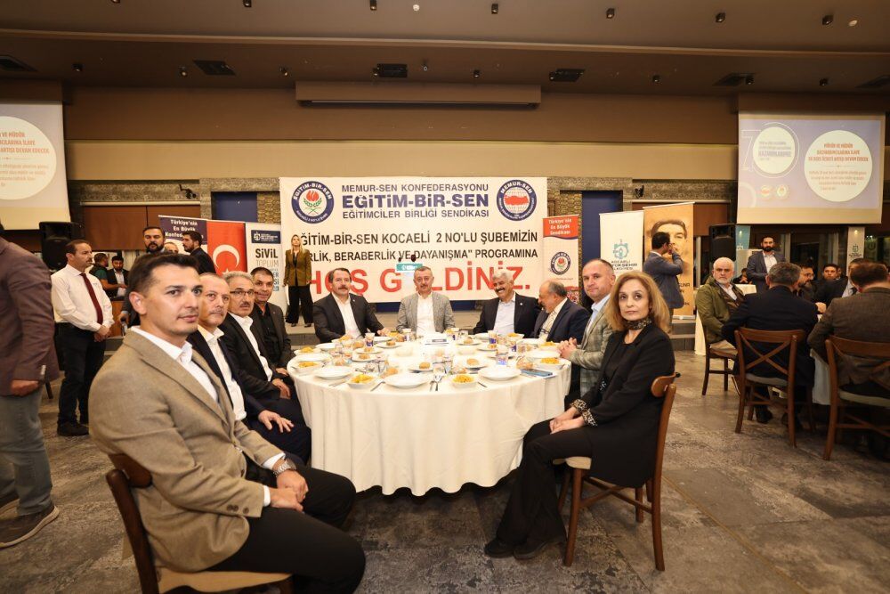 Marmara Belediyeler Birliği ve Kocaeli Büyükşehir Belediye Başkanı Tahir Büyükakın, Eğitim-Bir-Sen Kocaeli 2 No'lu Şubesi ev sahipliğinde düzenlenen 'Birlik Beraberlik ve Dayanışma' yemeğine katıldı. Burada bir konuşma gerçekleştiren Başkan Büyükakın, Memur-Sen’in kurucusu Mehmet Akif İnan’ı rahmet ve minnetle yad ederek başladı. Akif İnan’ın çok bereketli bir tohum ektiğini ve o bereketli tohumun karşılığının burada olduğunu dile getiren Başkan Büyükakın, “Türkiye’nin zor zamanlarında hep haktan ve adaletten yana durdunuz. Vesayet rejimine karşı, halkın yanında oldunuz. Bunun için her birinizi bu verdiğiniz emek ve mücadele için yürekten kutluyor ve tebrik ediyorum. Bizim tarafımız belli. Biz, mazlum ile zalim arasında bir mevzu olduğunda tereddüt etmeyiz. Biz, mazlumun yanında dururuz” dedi.