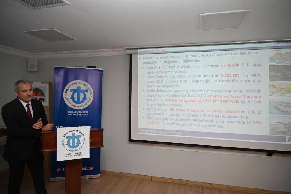 Açıklamalarına devam eden Koçan, “Kocaeli’nin genel potansiyel mevcut durumunu AFAD olarak değerlendirdiğimizde; Kocaeli 3 bin 420 kilometre kare yüzölçümü ile ülkemizin en küçük yedinci ili olup, %42’si ormanlarla kaplıdır. Nüfusumuz, 2023 yılı sonu itibari ile 2 milyon 102 bin 907 kişi olup, ayrıca 619 kişi/ kilometre kare nüfus yoğunluğu ile İstanbul’dan sonra ikinci sırada yer almaktadır. Tarihi dokusu ve yaşanmış olan afet geçmişinin yanında, stratejik coğrafi konumu itibariyle D100-D135 – Otoban ve Kuzey Marmara otoyolu ile 593 km karayolları ağı, 312 km demiryolu ağı ile çok önemli bir konumdadır. Ayrıca Kocaeli, 36 liman, 8 tersane, 15 yolcu iskelesi ve Gölcük Donanma Komutanlığı ile iki deniz bir göle kıyısı bulunmaktadır. Ülkemizin çok sayıda önemli sanayi kuruluşlarının yanında, 14 OSB ve ARGE merkezlerine ev sahipliği yapmaktadır” ifadelerini kullandı.
