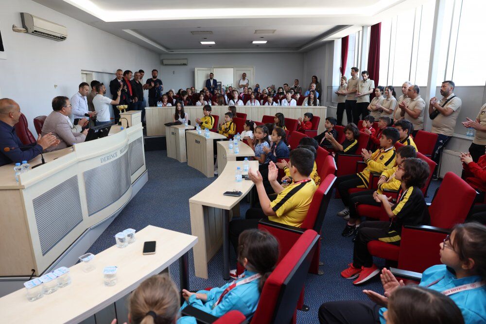 Başkan Gökçe, konuşmasının devamında “Ben ilçemizde okulları dolaştığımda Derince’nin eğitim anlamında çok başarılı bir ilçe olduğuna şahit oluyorum. Pırıl pırıl başarılı çocuklarımız var. Geleceğin doktorlarını, geleceğin mühendislerini, geleceğin sporcularını net bir şekilde görebiliyorum. Bizler de yerel yönetim olarak elimizden geldiğince size katkı sunmaya, destek vermeye devam ediyoruz. İlçemizde eğitime yaptığımız yardımı arttırdık geri kalan her şeyden tasarruf yaptık. Çünkü biz şuna inanıyoruz ki tasarruf yapılmayacak tek şey eğitimdir. Sonuçta spor, sanat ve kültür de eğitimin bir parçasıdır. Biz geçen yıl yaz dönemi her mahallede çocuklarımız için tiyatro oyunları düzenledik. Bu sene okullar kapandıktan sonra sizi yine yalnız bırakmayacağız. Yaz dönemi ile birlikte ilçemizde etkinliklerimiz artarak devam edecek” dedi.