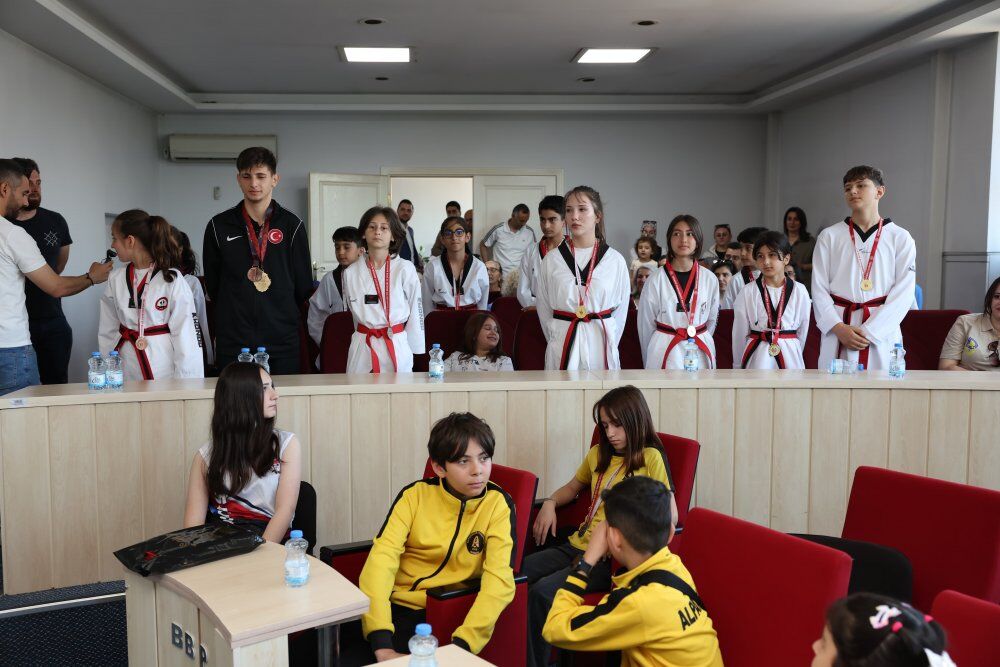 Derince Belediyesi Meclis Salonu’nda gerçekleşen ziyarette sporcuları tek tek tebrik eden Başkan Gökçe, gençlere başarılarının devamını diledi. Bünyesinde 600’ün üzerinde sporcunun yer aldığı Derincespor Kulübü bu yıl elde ettiği başarılı sonuçlarla adından söz ettirdi. Çim hokeyi branşında Kocaeli birincisi olan Derincespor Kulübü, halk oyunlarında Kocaeli ve Marmara birincisi olup Afyon’da düzenlenecek olan Türkiye Şampiyonası’nda mücadele etme hakkı kazandı. Geçtiğimiz günlerde Derince Kapalı Spor Salonu’nda düzenlenen Savate Milli Takım Seçmelerinde, 48 kg Yıldız Bayan kategorisinde Türkiye birincisi olan Derincespor Kulübü sporcusu Berra Banu Ferik ise Avusturya’da düzenlenecek olan şampiyonada ay yıldızlı bayrağımızı dalgalandırmak için mücadele edecek. Derincespor çatısı altında spor yapan Yusuf Eren Ay Tekvando Gençlik Olimpiyatları’nda Derince’yi temsil etme hakkı kazanırken yine Derincespor çatısı altında bireysel branşlarda çok sayıda derece elde edildi.