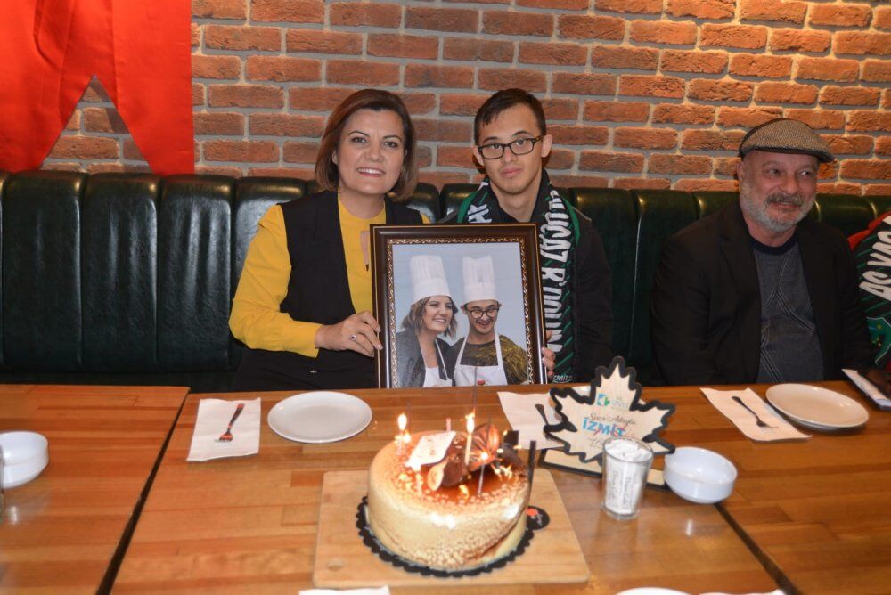 Ahmet’i “Günaydın Şampiyon” diyerek selamlayan İzmit Belediye Başkanı Av. Fatma Kaplan Hürriyet, “Sen ne kadar güzel bir başarı elde ettin öyle. Kutluyorum seni. Bizi gururlandırdın. İzmit adına Kocaeli adına sana çok teşekkür ediyorum. Başarıların daim olsun. Daha güzel başarılar elde edeceğine de eminim” şeklinde konuştu. Başkan Hürriyet Ahmet’e “As Yap Şampiyon Olucaz B’oolum” yazılı atkı ve birlikte pasta yaparken çektirdikleri fotoğrafı hediye etti.