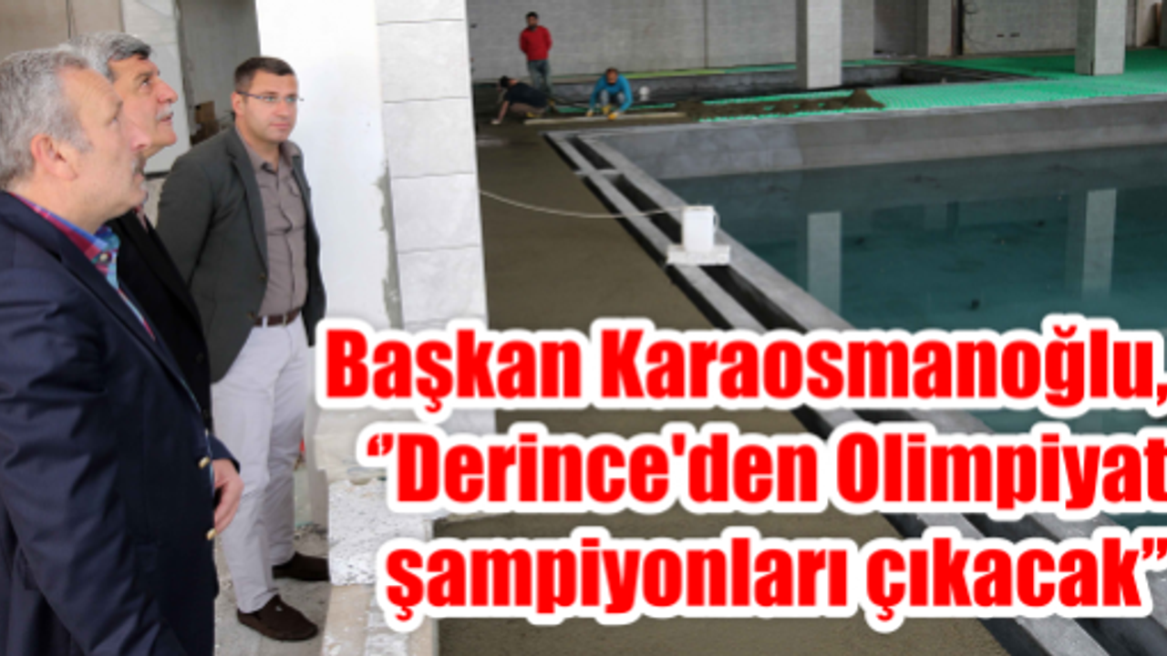 Derince Yavuz Sultan Mahallesi Canan Caddesi üzerindeki alana inşa edilen Kapalı Yüzme Havuzu, 25 metre uzunluğunda yedi kulvarlı yarı olimpik yüzme havuzu olarak yapılıyor. Derince’de sporun gelişimine katkı sağlayacak bu proje ile, okullardaki birinci sınıf öğrencilerinden engelli bireylere kadar herkes yüzme sporu ile tanışma imkânı bulacak. Kısa bir sürede hizmete açılması hedeflenen havuz, aynı zamanda yıldız kulaçların yetişeceği bir spor tesisi de olacak. Yüzme havuzunun Derince ilçesine çok yakışacağını ayrıca ifade eden Kocaeli Büyükşehir Belediye Başkanı İbrahim Karaosmanoğlu, “Tesisimiz aynı zamanda güzel bir işletmede olacağına inanıyorum. İlçemizin önemli bir eksikliğini ortadan kaldırırken, parolamız Derince’de yüzme bilmeyen kalmasındır” açıklamasını yaptı.