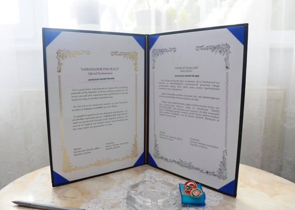 Kore gazisi Suat Hayrettin Arın 13 ay boyunca Kore’de yaşadığı anılarını Başkan Söğüt ile paylaştı. Bununla birlikte Başkan Söğüt kahraman Türk askerlerinin, Kore savaşında gösterdikleri üstün başarıların anısına Kore Cumhuriyeti tarafından kendilerine verilen “Barış Büyükelçisi” resmi bildirgesini inceledi.