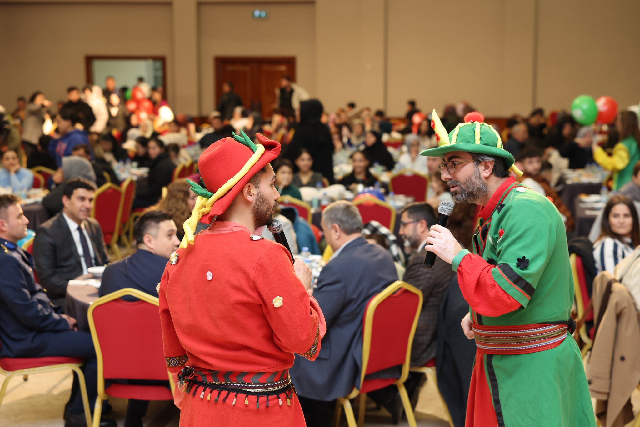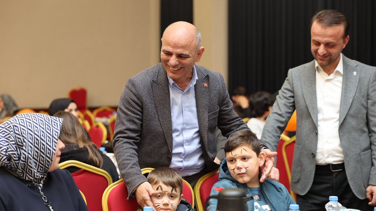 Kaymakam Uğur Kalkar, “Bu mübarek günlerde yetim ve öksüz çocuklarımızın mutluluklarını ortak olmanın heyecanını bizler de yaşıyoruz. Devlet olarak, yerel yönetimler olarak her zaman sizlerin yanınızdayız” dedi. Kaymakam Uğur Kalkar’ın ardından çocuklara Hacivat ve Karagöz ile gölge oyunu gösterisi gerçekleştirildi.