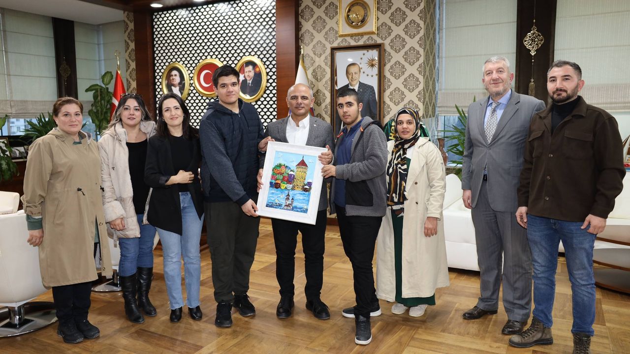 Özel Eğitim Uygulama Okulu öğrencileri, Başkan Söğüt’e tablo hediye etti
