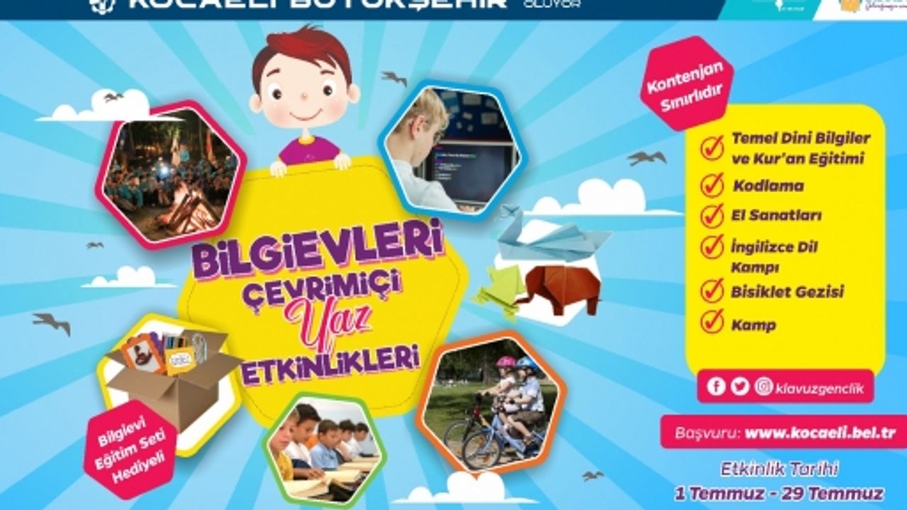 Kocaeli Büyükşehir Belediyesi Gençlik ve Spor Hizmetleri Dairesi Başkanlığı’na bağlı olarak ilk ve ortaöğretim öğrencilerine ücretsiz hizmet veren Bilgievleri, yıllardır sergilediği eğitim kalitesi ile çocukların öncelikli tercihi olmaya devam ediyor. Kocaeli genelinde 11 ilçedeki 17 Bilgievi’nde yaz sezonu Koronovirüs tedbirleri kapsamında online olarak yapılacak. Bilgievleri’ndeki yaz faaliyetlerine kayıtlar sezon boyunca devam edecek.