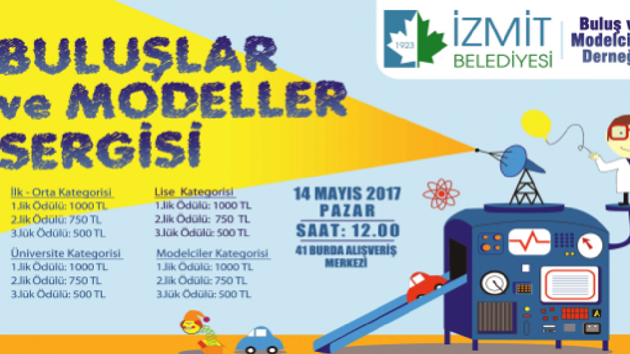 Buluş ve Modelciler Derneği ile ortaklaşa düzenlenen sergi bu sene 41 Burda AVM’de Pazar günü saat 12.00 de düzenlenecek. Çok sayıda okuldan öğrenci ve öğretmenlerin katılacağı sergide 4 ayrı kategoride dereceye giren buluş ve modellere ödülleri de verilecek.