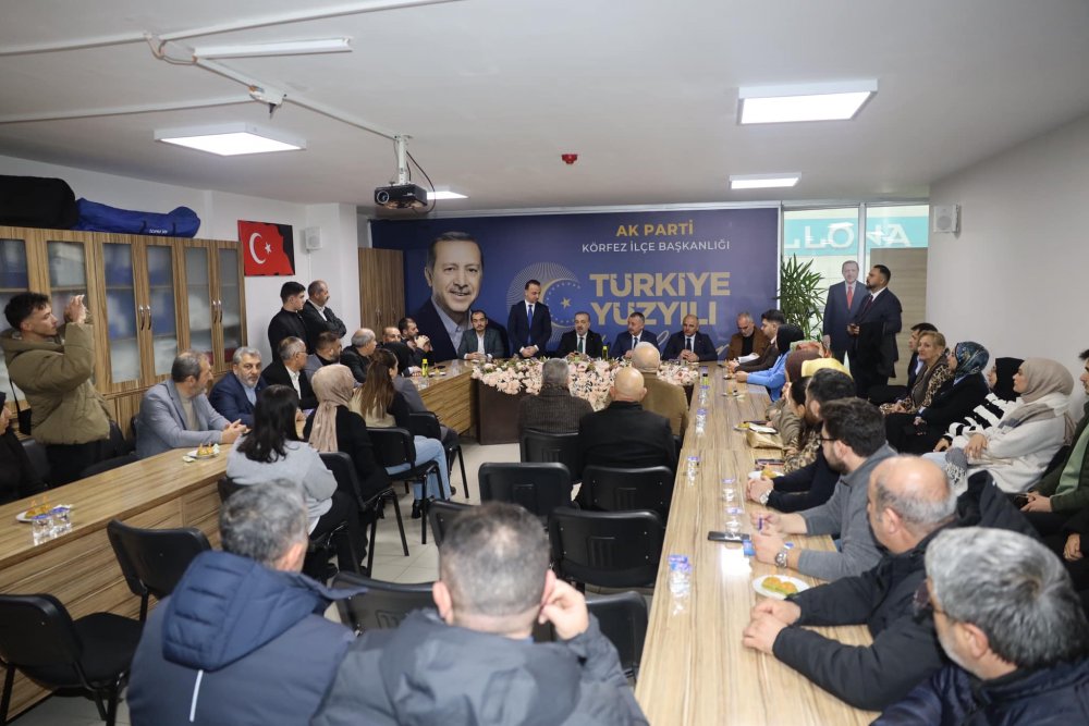 AK Parti Körfez İlçe Teşkilatı, Kocaeli İl Başkanı Dr. Şahin Talus ve Kocaeli Büyükşehir Belediye Başkanı Doç. Dr. Tahir Büyükakın’ın katılımıyla anlamlı bir ziyaret gerçekleştirdi. Körfez Belediye Başkanı Şener Söğüt’ün de katıldığı ziyarette, AK Parti Körfez İlçe Başkanı Nurettin Okudan, ilk olarak kısa bir konuşma yaparak teşkilat üyelerine hitap etti.