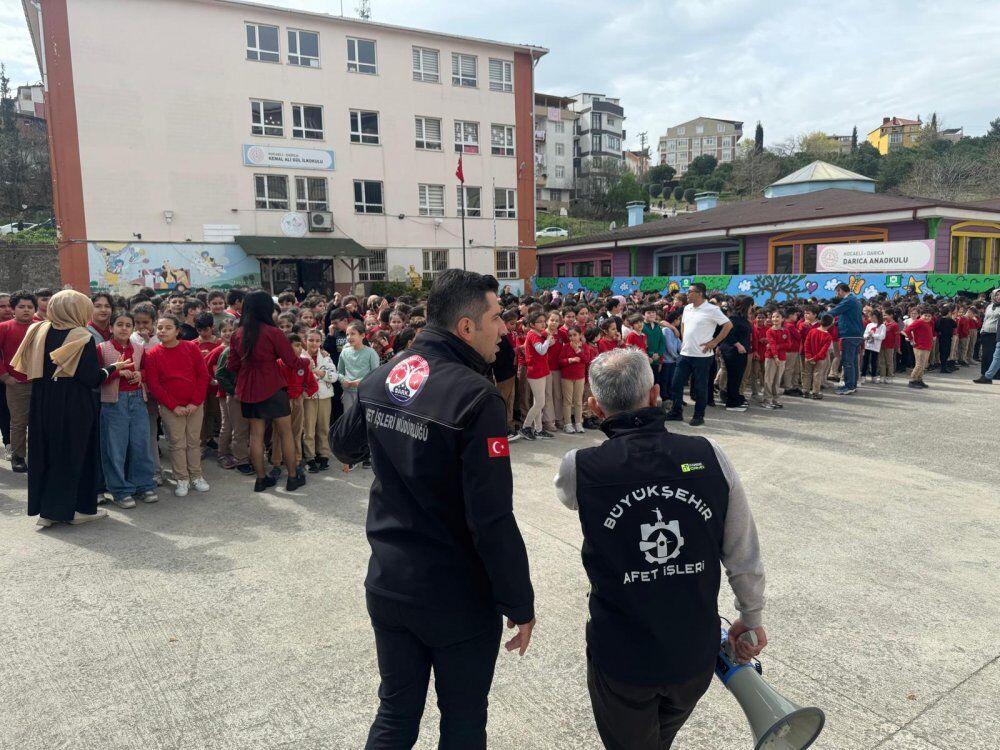 Büyükşehir Belediyesi, toplumda afet bilinci oluşturmak için çalışmalara devam ediyor. Bu kapsamda Afet İşleri Dairesi Başkanlığı, Darıca ilçesinde faaliyet gösteren okullarda “Afet Farkındalık Eğitimi ve Tahliye Tatbikatı” gerçekleştirdi.