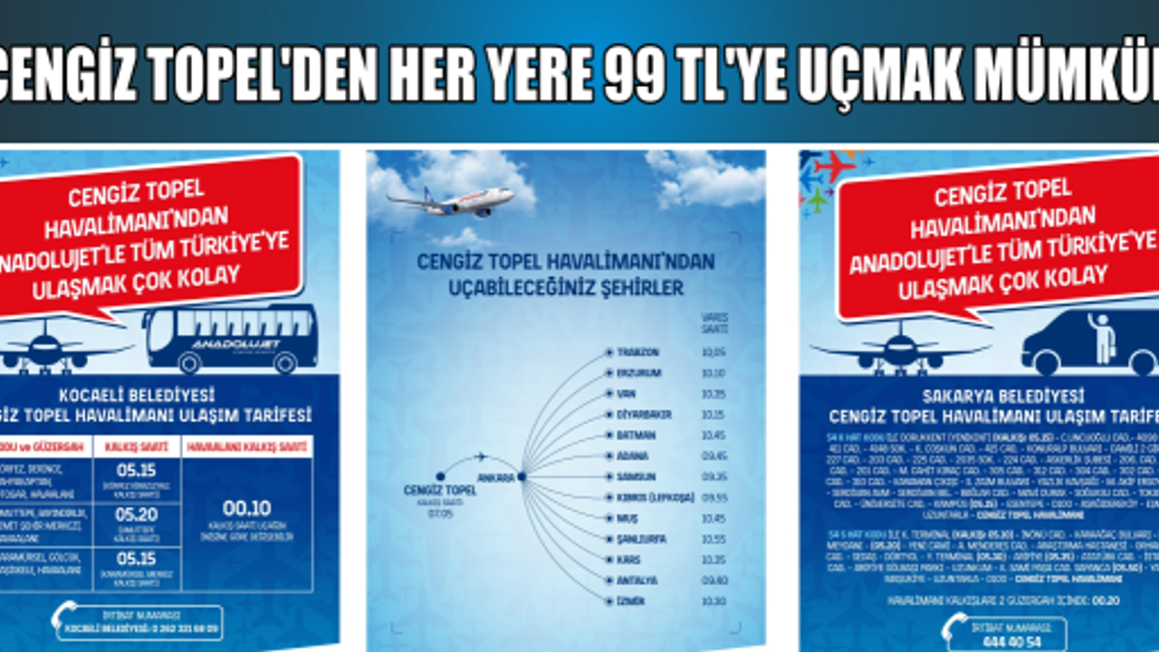 Kocaeli’den her gün uçuşların başladığını söyleyen Anadolu Jet Genel Müdürü İbrahim Doğan, sadece 99 TL’ye Türkiye’nin birçok bölgesine gidilebildiğini söyledi.