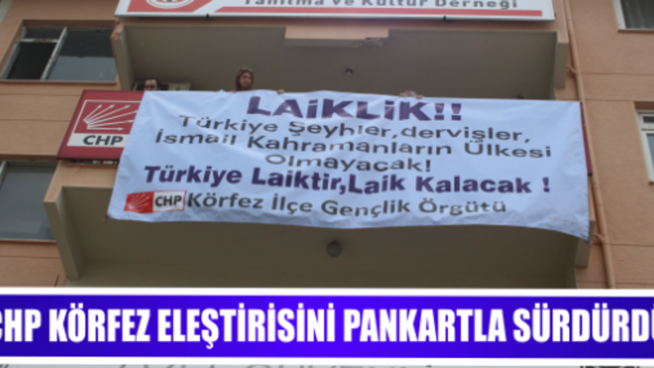 TBMM Başkanı İsmail kahraman’ın laiklik konusundaki açıklamalarına tepkiler devam ediyor. CHP Körfez İlçe Başkanı Mehmet Kaçar, daha önce yaptığı yazılı açıklamasının ardından bu kez de hazırlanan pankartı ilçe binasına astı.