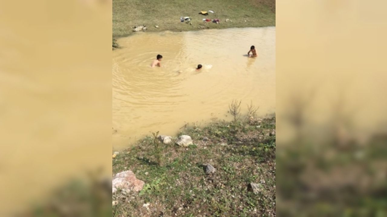 Havaların ısınması sonrasında bu gölete giren küçük çocuklar farkında olmadan tehlikeli bir eğlenceye daldılar.