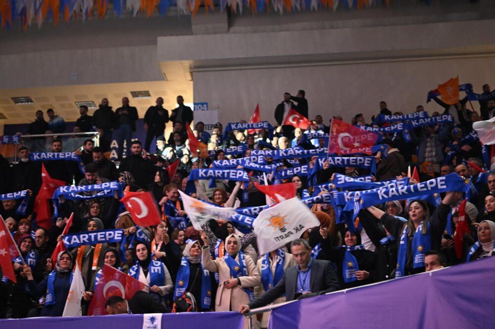 “Kongrelerimiz şahsi hesapların değil, Türkiye sevdasının, Türk milletine hizmet etme yarışının yaşandığı zeminlerdir" ifadelerini kullanan Erdoğan, "Kongrelerimiz, halef ve selefin bir arada olduğu, yol arkadaşlığının devam ettiği, eski-yeni ayrımlarının yapılmadığını kucaklaşma vesileleridir. 8. Olağan kongre sürecimizi kanuni bir zorunluluğu yerine getirmekten ziyade, partimizi güçlendirmenin bir zemini olarak görüyoruz. Bir taraftan eski yol ve dava arkadaşlarımızla ahdimizi tekrar yenilerken, diğer taraftan yeni isimleriyle kadrolarımızı takviye ediyoruz. Bugüne kadar kimseye vefasızlık yapmadık. Emektarlarımızın tecrübelerini, gençlerimizin heyecanıyla birleştirerek tam 23 yıldır Türk siyasetine damgamızı vurduk. Bugün de, yarın da aynı yolda yürümeye devam edeceğiz. Kardeşlerim, şu noktaya özellikle dikkatleri çekmek zorundayım. Cumhurbaşkanlığı hükümet sistemiyle birlikte, ülkeyi yönetmek için milletimizden yarısından fazlasının oyunu almamız gerekiyor. Gençler, bir başka ifadeyle, 85 milyon vatandaşımızdan biraz önce ifade ettiğimiz çok küçük bir kesim dışında herkesin gönlünü kazanmak durumundayız. Bugüne kadar tecrübelerimiz bize, Türkiye'de AK Parti ve Cumhur İttifakı'ndan başka bu çitayı aşabilecek hareket olmadığını gösteriyor. Her ne kadar son mahalli seçimlerde arzu etmediğimiz bir neticeyi elde etmiş olsak da bunu bir yol kazası olarak kabul ediyoruz. Son seçimlerden çıkardığımız dersler ışığında, gereken düzeltmeyi her kademede yapıyoruz ve yapacağız. Teşkilatlarımızı güçlendirerek, politikalarımızı güncelleyerek, yönetim tarzımızı geliştirerek önümüzdeki seçimlerde yeniden yüzde 50 çıtasının üzerine çıkacağımızdan şüphe duymuyorum. Yeter ki şöyle toparlanıp kendimize gelelim. Yeter ki misyonumuzun ne olduğunu hatırlayalım, yeter ki yüreğimizi, kollarımızı milletimize açalım. Gereğinin kendiliğinden geldiğini zaten göreceksiniz” dedi.