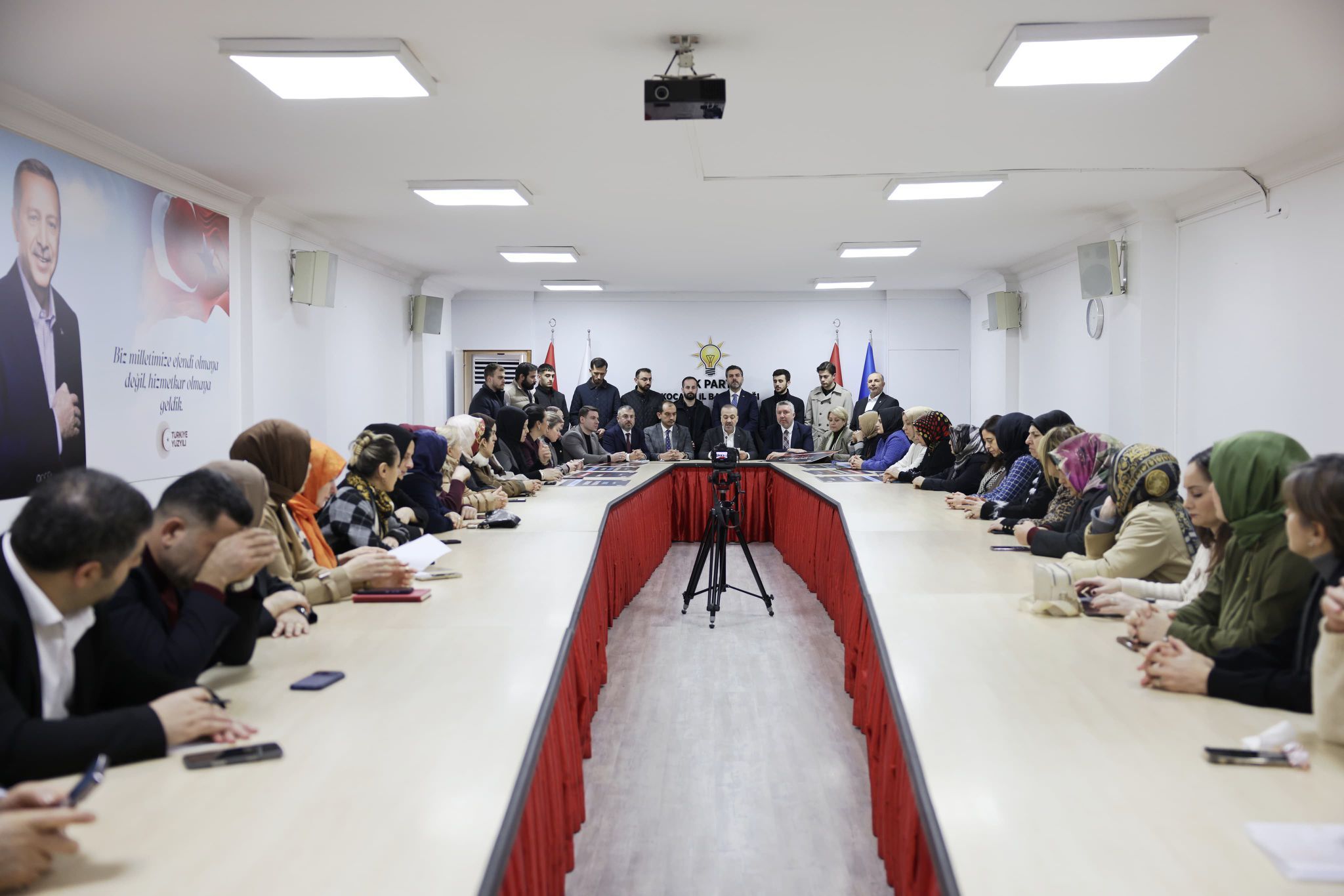 Üç kademe İl teşkilatının hazır bulunduğu toplantıda açılan pankartlarda dikkat çekti.