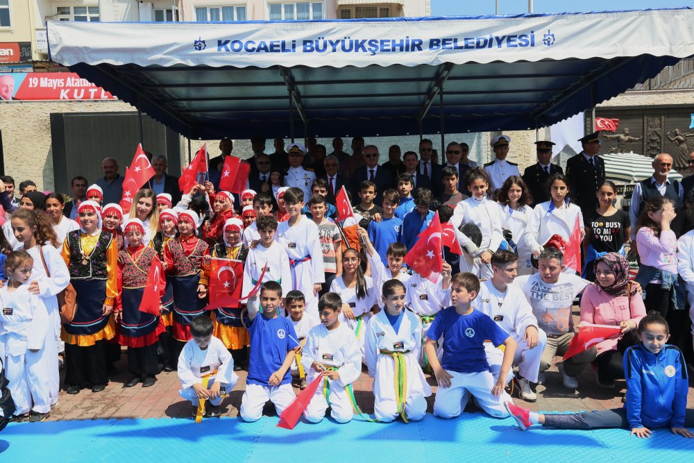 Kent Meydanı’ndaki etkinlikler öncesi ilk olarak Derince Kaymakamı Cemil Aksak, Derince Belediye Başkanı Zeki Aygün ve Garnizon Komutanı Vekili Dz. Albay Yetkin Koçtaş, öğrencilerin sportif etkinlikler yaptığı alanları gezerek, onlara eşlik etti. Kent Meydanı’nda düzenlenen etkinlikler saygı duruşu ve İstiklal Marşı’nın okunmasıyla başladı. Programda ilk olarak bir selamlama konuşması yapan Gençlik Hizmetleri ve Spor İlçe Müdürü Yusuf Yüksel, 19 Mayıs’ın önemine değindi. 19 Mayıs dolayısıyla düzenlenen törenlerde ilk olarak Kocaeli Eskrim Kulübü sporcuları gösteri sundu. Ardından Gençlik Hizmetleri Spor Kulübü’nün öğrencileri cimnastik, tekvando, güreş ve karate branşlarında çeşitli gösterilere imza attı. Sportif etkinliklerin ardından Çınarlı Ortaokulu öğrencilerinin halk oyunları gösterisi ile devam eden Derince’deki program protokol ve öğrencilerin toplu fotoğraf çekilmesi ile sona erdi.