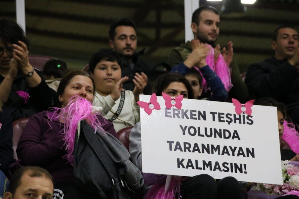 Kadınlarda en sık görülen kanser türü olan meme kanserinde erken teşhise dikkat çekmek için Derince’de çok anlamlı bir etkinlik düzenlendi. Derince Belediyesi ve Derince İlçe Sağlık Müdürlüğü iş birliğinde gerçekleşen 'Meme Kanseri Farkındalık Ayı' etkinlikleri kapsamında düzenlenen voleybol müsabakası Derince Kapalı Spor Salonu’nda yapıldı. Derince Belediye Başkanı Zeki Aygün, AK Parti Derince İlçe Başkanı Koray Merdan, İlçe Sağlık Müdürü Uzman Dr. Hande Cihan Mutlu, Derince Gençlik ve Spor İlçe Müdürü Yusuf Yüksel, Yenikent Mahalle Muhtarı Erol Küçük ve sporseverlerin takip ettiği müsabakada meme kanseri farkındalığına değinilerek erken teşhisin önemi vurgulandı.