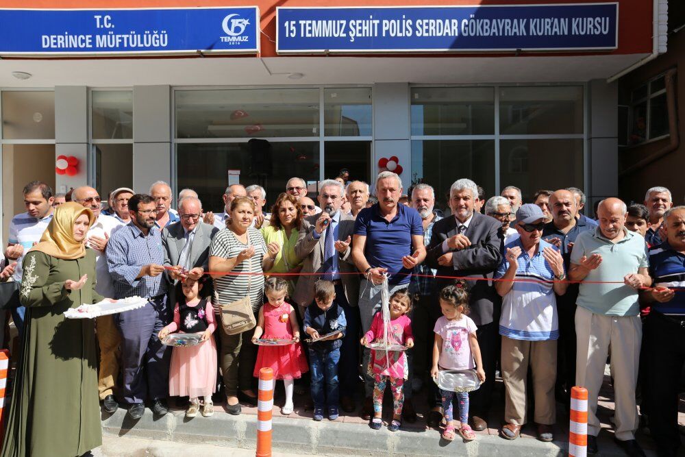 Kocaeli İl Müftüsü Yusuf Doğan ise yaptığı konuşmada “Rabbim şehitlerimizin bize bıraktığı mukaddes mirası en güzel şekilde yaşatmayı nasip etsin. Derdimiz Kuran, sünnet eksenli cami merkezli bir toplum inşa etmek. Bu konuda başta aileler olmak üzere hepimize büyük görevler düşüyor.” dedi. Programda son konuşmayı yapan Derince Belediye Başkanı Ali Haydar Bulut, “Bu güzel Kuran Kursu’nun açılmasında emeği geçen başta cami derneği yönetimi olmak üzere tüm destek verenlere teşekkür ediyorum. Halkımızla, mahalle sakinlerimizle birlikte bu bina inşa edildi. Birlik ve beraberlik içerisinde hareket edince bu güzel eserler ortaya çıkıyor.” dedi. Başkan Bulut’un konuşmasının ardından minik öğrenciler ve vatandaşların da katılımıyla 15 Temmuz Şehit Polis Serdar Gökbayrak Kuran Kursu’nun açılışı yapıldı.