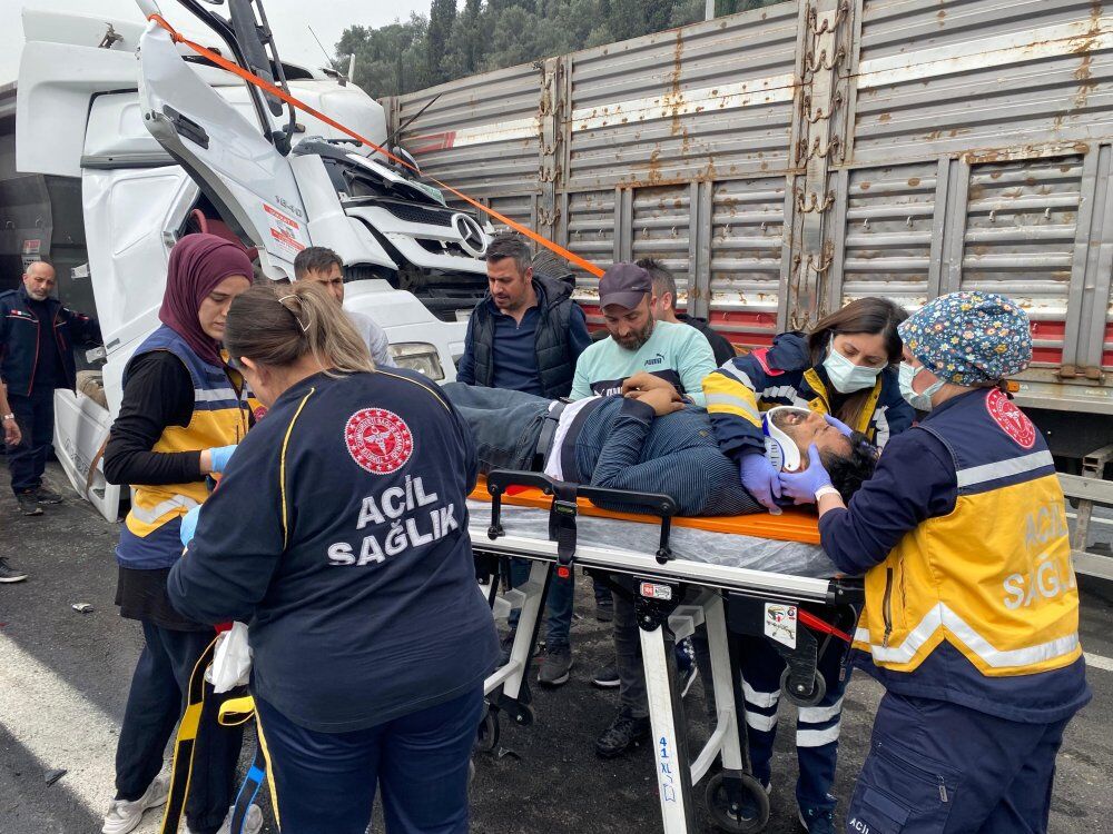 TEM Otoyolu Kocaeli geçişinde 3 tır ve kamyonun karıştığı zincirleme kazada bir sürücü kabinde sıkışarak yaralandı. Kaza sebebiyle trafik bir saat kapalı kalırken, araçların kaldırılmasıyla trafik eski seyrine döndü.