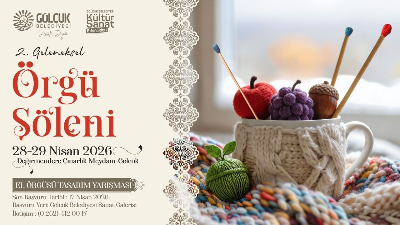 Gölcük Belediyesi kültür ve sanat etkinlikleri kapsamında bu yıl ikincisi gerçekleştirilecek olan Geleneksel Örgü Şöleni, 28-29 Nisan 2026 tarihlerinde Değirmendere Çınarlık Meydanı’nda kapılarını açacak. “Sanata Değer” sloganı ile sanatı ve sanatçıya yönelik desteklerini sürdüren Gölcük Belediyesi, ikincisini düzenleyeceği şölen ile geleneksel el sanatlarını yaşatarak, yeni nesillere aktarmayı hedefliyor.