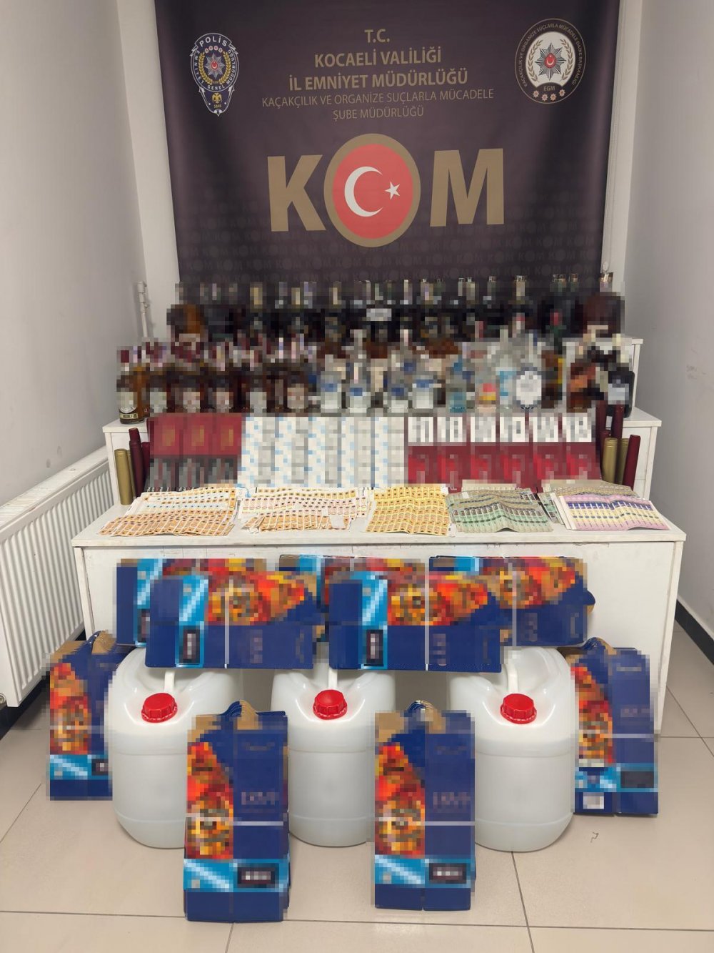Kocaeli'de yaklaşan yılbaşı öncesi denetimlerini sıkılaştıran polis ekipleri tarafından düzenlenen operasyonlarda, piyasa değeri 5 milyon lirayı bulan, aralarında kaçak içki ve tütünün de bulunduğu birçok ürün ele geçirildi.