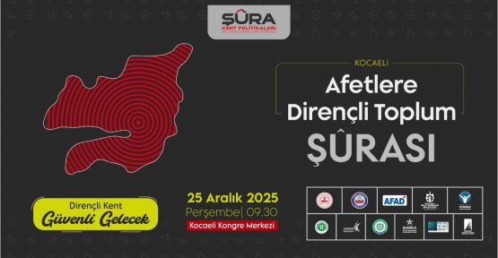 Afetlere hazırlık ve dayanıklılık alanında örnek projelere imza atan Kocaeli Büyükşehir Belediyesi, kentteki sivil toplum kuruluşlarını, kamu kurumlarını, akademisyenleri ve diğer paydaşları bir araya getirecek olan “Kocaeli Afetlere Dirençli Toplum Şûrası ve Çalıştayı’nı” 25 Aralık Perşembe günü (yarın) saat 09.30’da Kocaeli Kongre Merkezi’nde gerçekleştirecek. Büyükşehir öncülüğünde, ŞÛRA Kent Politikaları ve Araştırmaları Merkezi tarafından düzenlenecek olan bu çalıştayda; Kocaeli’de afet yönetimi kapasitesinin güçlendirilmesi, paydaşlar arası iş birliğinin artırılması ve toplumsal faydayı önceleyen somut politika ile proje önerileri oluşturulacak.