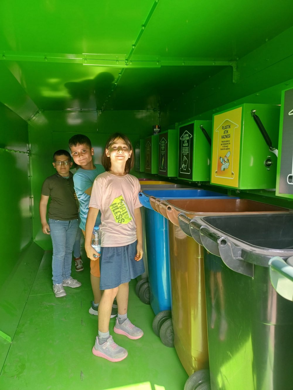 Son olarak Atık Getirme Merkezi’nin konuğu Nene Hatun İlkokulu’ nun minik öğrencileri oldu. Sıfır Atık Merkezi Sorumlusu Ufuk Salih Kaya tarafından öğrencilere, atık pillerin, atık yağların ve ambalaj atıklarının evsel atıklardan ayrı toplanmadığı takdirde yaratacağı olumsuzluklar anlatıldı. Anlatılanları büyük bir merakla dinleyen minikler, minik bir çevreci olma yolunda ilerleyeceklerini söylediler.