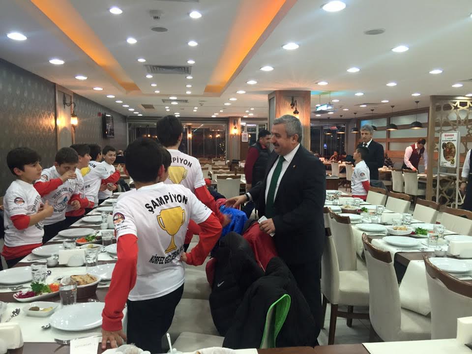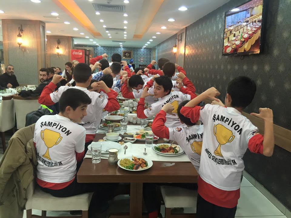 Düzenlenen program Çınar Park Restaurantta gerçekleştirildi. Şampiyon olan U12 takımı tam kadro programa katılırken, ailelerde çocuklarını yalnız bırakmadı. Körfez Belediye Başkanı İsmail Baran, Başkan Yardımcısı İsa Taş, Spor Koordinatörü Metin Özkan, Belediye Meclis Üyeleri ve teknik heyet tam kadro olarak şampiyonluk yemeğine katıldı.