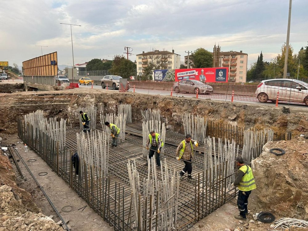 İzmit istikametinden Başiskele Belediyesi’ne doğru dönüş köprüsünün imalatının yapıldığı projede çalışmalar sadece gündüz değil gece saatlerinde de yürütülüyor. Köprünün D-130 Karayolu’nun güney tarafındaki ilk ayağının yapımının sürdüğü projede kazıklama işlemi başladı. Tamamlanmak üzere olan fore kazık imalatı ile beraber Başiskele Belediyesi’ne doğru dönecek olan dönüş köprüsünün ayakları görünmeye göründü. Köprünün ayağının yapımı tamamlanınca kiriş imalatına geçilecek.