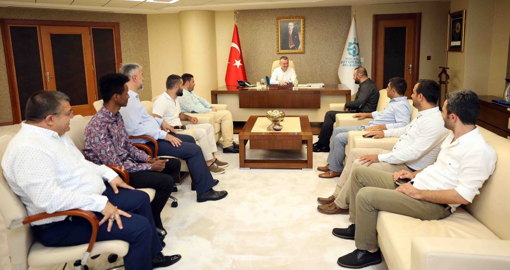 Marmara Belediyeler Birliği ve Kocaeli Büyükşehir Belediye Başkanı Doç. Dr. Tahir Büyükakın, Tüm Sanayici ve İş Adamları Derneği (TÜMSİAD) Başkanı Abdulkadir Yılmaz ve yönetimini makamında kabul etti. Ülke ve kent ekonomisine dair istişarelerin yapıldığı görüşmede, Türkiye’ye karşı yürütülen her türlü ayak oyunlarının işe yaramayacağı vurgulandı. TÜMSİAD yönetiminin nazik ziyaretinden dolayı konuklarına teşekkür eden Başkan Büyükakın, “İş dünyamızla birlikte üreteceğiz, yeni pazarlar bulacağız ve ülkemizin kalkınmasına hep birlikte katkı sunacağız. İş insanlarımızın taleplerine karşı duyarlı davranıyoruz. Bize düşen her görevi yerine getirmeye de hazırız” dedi.