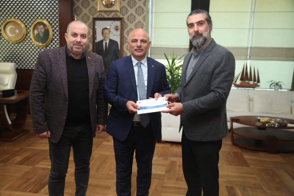 Başkan Söğüt, ziyaretten duyduğu memnuniyeti dile getirerek, “Körfez için elini taşın altına koyan, fikirleriyle, emekleriyle katkı sunan her hemşehrimiz bizim için çok kıymetli. Nazik ziyaretleri ve güzel temennileri için kendilerine teşekkür ediyorum” dedi. Erol Kazma da Erzurum’da açacağı yeni işyeri ile ilgili davetiyesini Başkan Söğüt’e takdim etti.