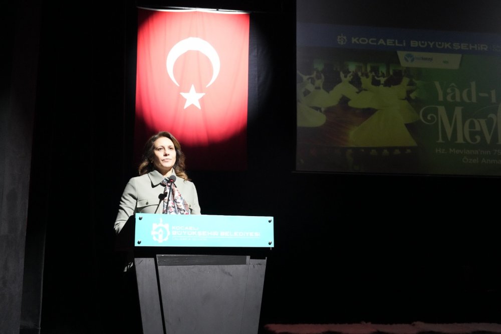 Başkan Vekili Berna Abiş ise konuşmasına bu anlamlı gecede kendilerini yalnız bırakmayan Hz. Mevlana’nın torunları ve vatandaşlara teşekkür ederek başladı. “İnsanlığa asırlardır yol gösteren bir gönül sultanı Hz. Mevlana’yı 752. vefat yıldönümünde anmak üzere bir araya geldik” diyen Abiş, “Hz. Mevlana yalnızca bir çağın değil, çağları aşan bir hikmetin ve sevginin adıdır. O, ‘Gel Ne Olursan Ol Gel’ çağrısıyla insanlığı birliğe, sevgiye davet etmiştir. Bu çağrı; dini, dili, ırkı ne olursa olsun tüm insanları aynı sevgi ikliminde buluşturan evrensel bir mesajdır” dedi.