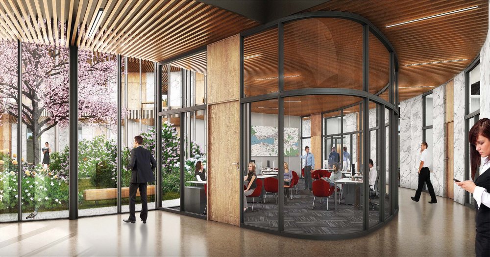 Kampüsün tüm blokları, modern mimariyle tasarlanan bağlantı alanı sayesinde birbirine entegre edildi. Böylece binalar arasında kesintisiz ve kapalı geçiş sağlanarak çalışma düzeni daha uyumlu hale getirildi.