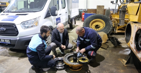 Sanayi tesisi gibi çalışan atölyede; motor toplama, şanzıman revizyonu, lastik işleri, fren ve diğer işlerin yapıldığını ifade eden Gürgen, “Dışarıda araç bakım onarım tamirleri hem çok uzun sürüyor hem de servis ücretleri çok pahalı. Kendi imkânlarımız ve kendi yedek parça stoğumuzla belediyemize büyük tasarruf sağlamış oluyoruz” diye konuştu.