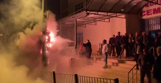 Edinilen bilgilere göre, Körfez ilçesinde programı sırasında cemevinin önünde bulunan elektrik panosundan alevler yükselmeye başladı. Durumu fark eden davetliler cemevini hızla boşaltarak dışarı çıktı. Yangına ilk müdahale yangın tüpleriyle yapılmasına rağmen alevler kontrol altına alınamadı. Meydana gelen patlama ve parlamalar büyük korkuya neden olurken, patlamalar dakikalarca sürdü. İhbar üzerine olay yerine itfaiye ekipleri sevk edildi. İtfaiye ekipleri yangını kontrol altına alarak söndürürken, SEDAŞ ekipleri de bölgede onarım çalışması başlattı. Olayda can kaybı ya da yaralanma yaşanmazken, cemevinde yapılması planlanan tören güvenlik gerekçesiyle iptal edildi.