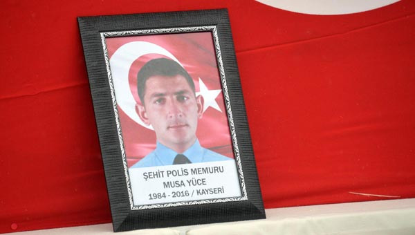 Şehit polisin öğretmen olan kardeşi Seyit Yüce, zihinsel engelli öğrencileriyle birlikte kardeşinin şehit haberini aldıktan sonra gramofon kağıtlarından yaptığı Türk bayrağını Vali Düzgün'e hediye etti.