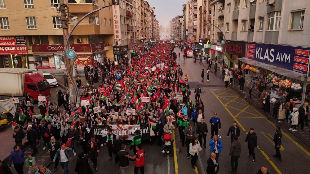 Gebze'de Gazze'ye destek amacıyla yürüyüş düzenlendi. Binlerce kişi, Filistin bayrakları ve pankartlar taşıyarak sloganlar attı.