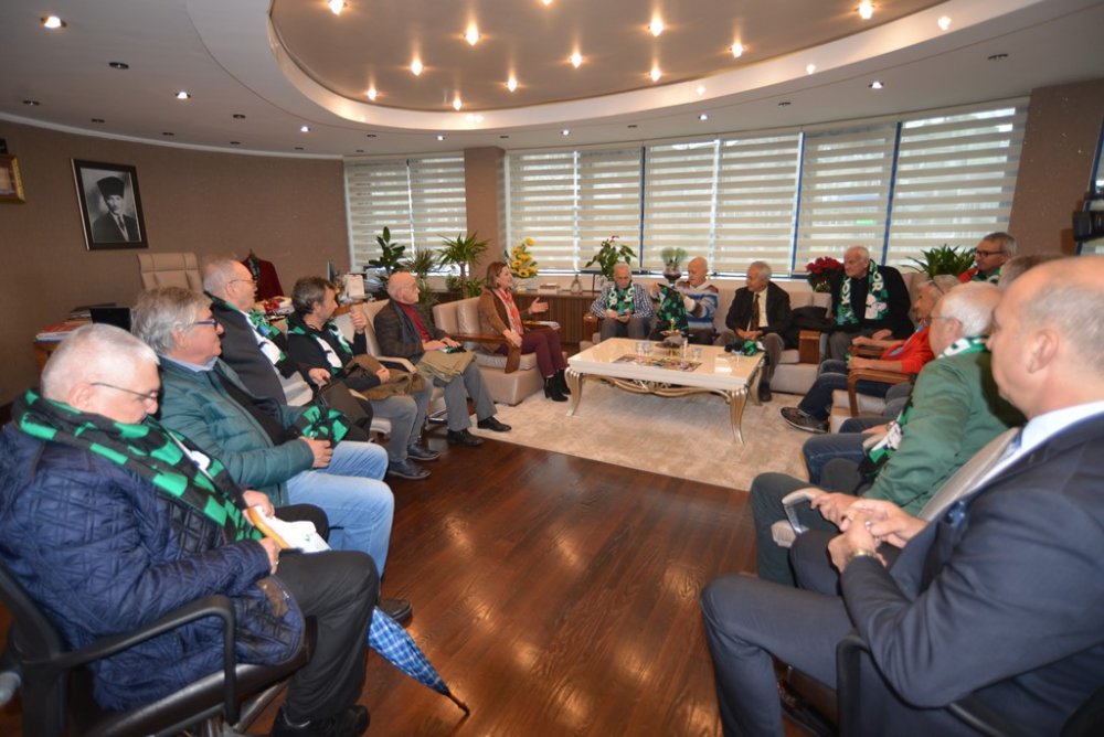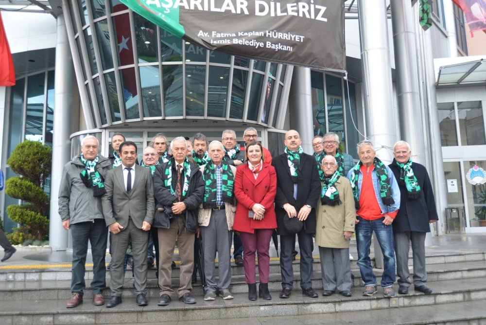 Kocaelispor’un eski başkanlarından İsmail Kalkandelen, eski yöneticilerinden Metin Uçar, Özer Altan, Güngör Saner, eski futbolcularından İbrahim Yazıcıoğlu, Mahir Danabay, Müfit Şenkal, Kemal Türkeş, Ali Burul, Engin Tuncay, Bülent Baurman, Kamuran Akşar, Hüseyin Çakmak ile Biz İzmitiz Platformu Başkanı Hüseyin Erol, Kocaelispor’un efsane yöneticilerinden Mehmet Sadık Efe’nin vefatının 16. yıl dönümü kapsamında “İzmit Unutmaz” etkinlikleri kapsamında Mehmet Sadık Efe’yi anma programı düzenleyen İzmit Belediye Başkanı Av. Fatma Kaplan Hürriyet’i makamında ziyaret etti.