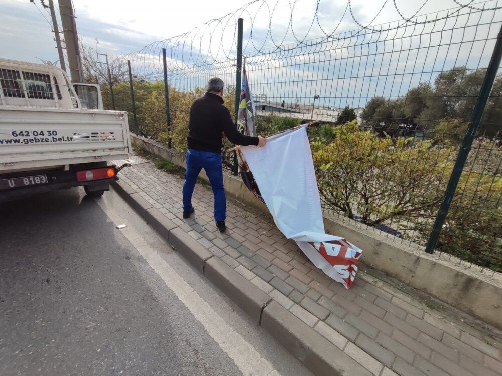 Gebze Belediye Zabıta Müdürlüğü ekipleri ilçede denetimlerine ara vermeden devam ediyor. Zabıta müdürlüğüne bağlı ekipler, ilçe genelinde izinsiz asılan afiş ve pankartlara yönelik çalışma başlattı. Zabıta ekipleri, yasak olmasına rağmen halkın yoğun olduğu meydan, park, cadde ve sokaklar üzerinde bulunan elektrik direkleri, trafolar, ağaçlar, duvarlar, panolar, otobüs durakları, yönlendirme ve bilgilendirme levhaları gibi birçok noktaya afiş asanlara yönelik denetimlerini sıklaştırdı. Şehrin çeşitli bölgelerinde kontroller gerçekleştiren ekipler, gelişigüzel, izinsiz mevzuata aykırı asılan, çevre ve görüntü kirliliği oluşturan afişleri tek tek toplarken uyarıları dikkate almayanlar hakkında kanuni işlem de uyguluyor. Denetimlerin devam edeceğini dile getiren belediye yetkilileri vatandaşların karşılaştıkları olumsuzlukları kendilerine bildirmeleri çağrısında bulundu.
