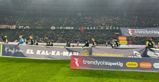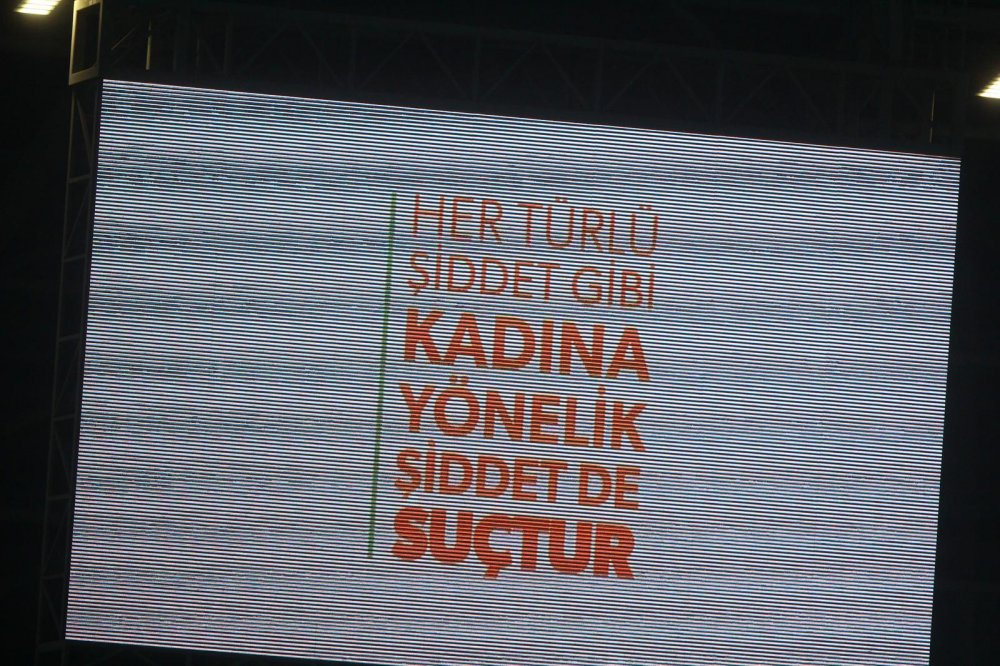 Farkındalık etkinliği, tribünlerden gelen güçlü destekle taçlandı. Taraftarlarca açılan “KADINA EL KAL-KA-MAZ, KADINA ŞİDDET İNSANLIK SUÇUDUR” pankartı, stadyumda yankı bulan mesajın toplumun her kesiminde karşılık bulduğunu bir kez daha gözler önüne serdi.