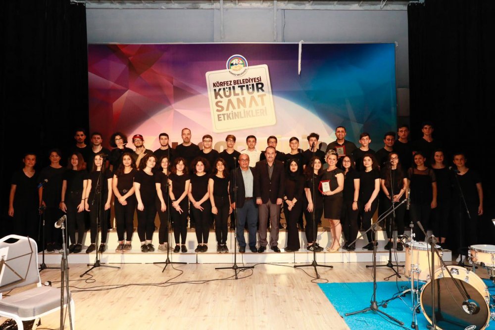 Körfez Belediyesi Gençlik Korosu, ilk konserinde performansları ile büyüklerine taş çıkarttı. Körfez Belediye Başkanı Şener Söğüt’ün oluru ile kurulan ve 7 haftalık kısa bir sürede çalışma yapan gençlik korosunda 6 farklı okuldan 30 öğrenci yer aldı. Şefler Hülya Eker, Selçuk Eker ve Murat Kiremitçi tarafından hazırlanan gençler, hem koro olarak hem de solo performansları ile izleyenlerden tam not aldı.