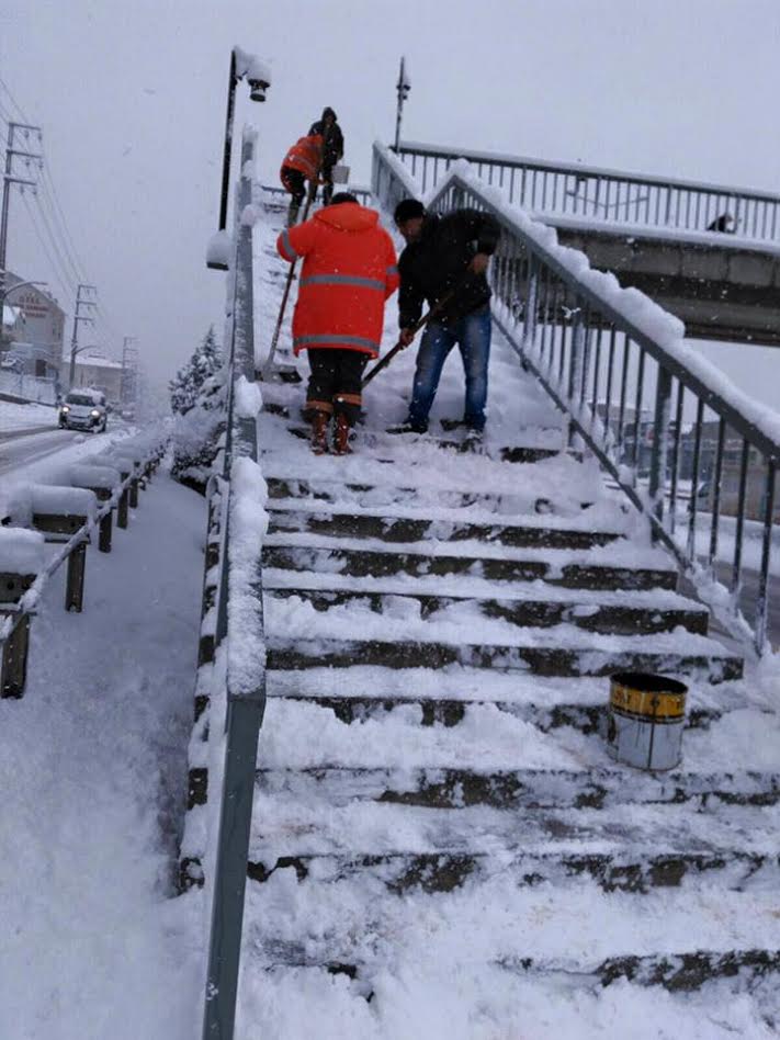 Kar yağma olasılığına karşı günler öncesinden hazırlıklarını tamamlayan ve ekipleri belirli noktalarda bekleterek kar yağışı ile birlikte ana yolların araç trafiğine açık kalmasını sağlayan Körfez Belediyesi, cadde kenarlarındaki kaldırımları temizleyerek yayalar için güvenli hale getiriyor.